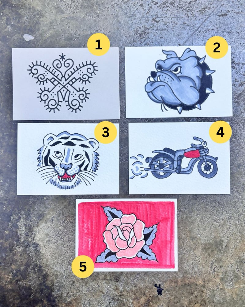 2.5” x 3.75” mini drawings with pen and water based markers